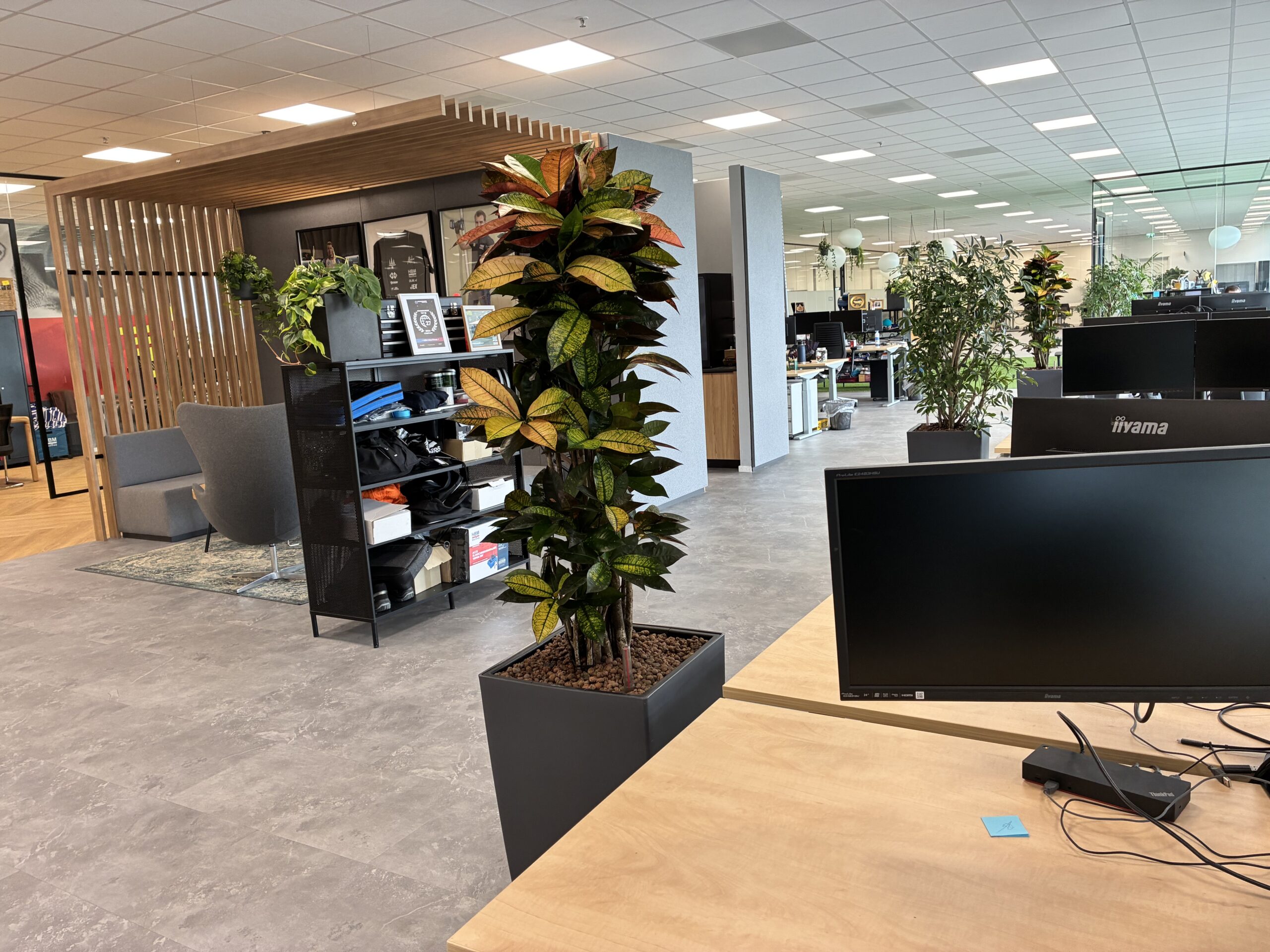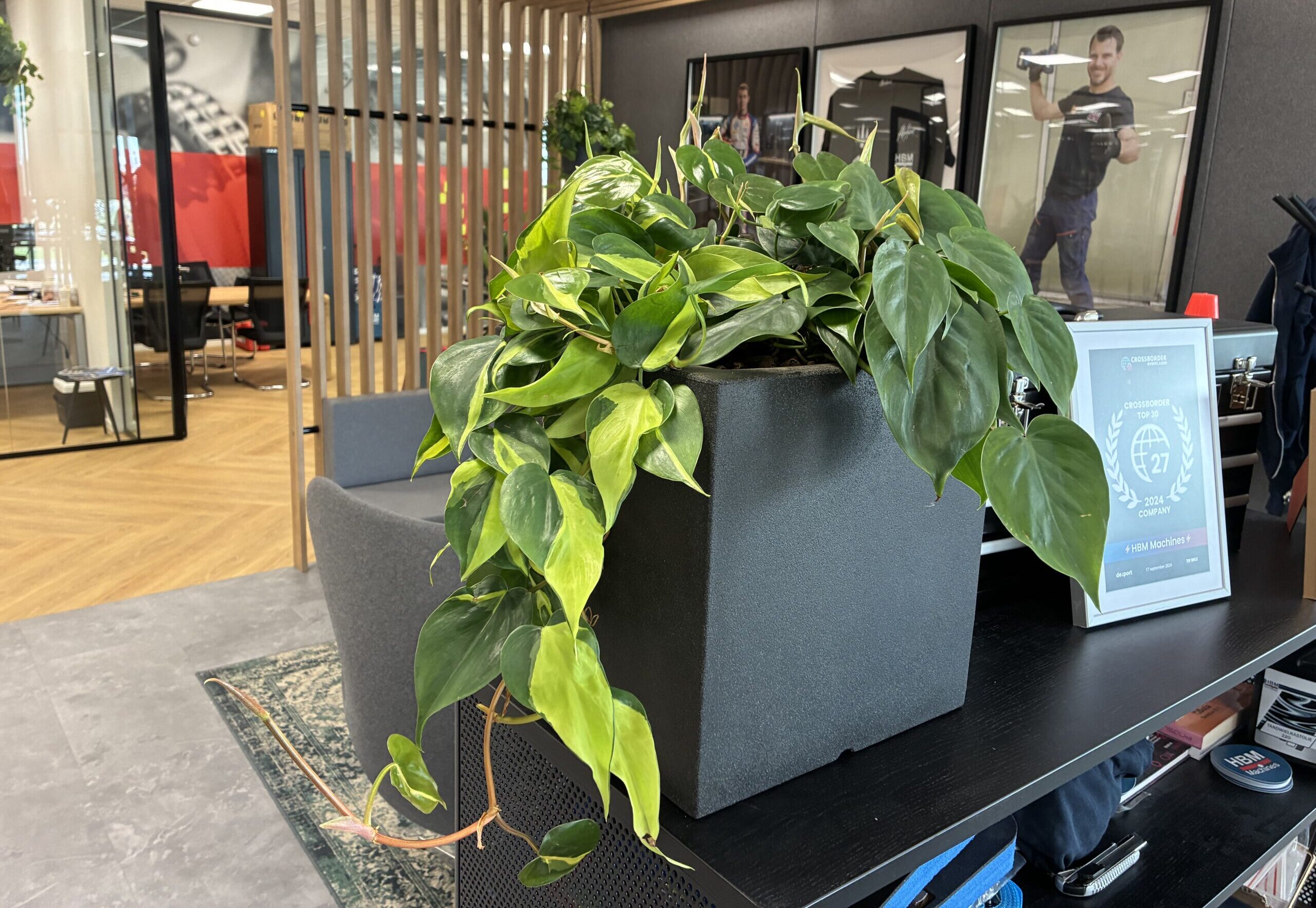 Voor HBM Machines hebben we het volledige pand mogen inrichten met groen, van moswanden tot hangplanten, planten in potten en stijlvolle roomdividers. Een project waarin functionaliteit, sfeer en beleving samenkomen in een frisse, natuurlijke werkomgeving.