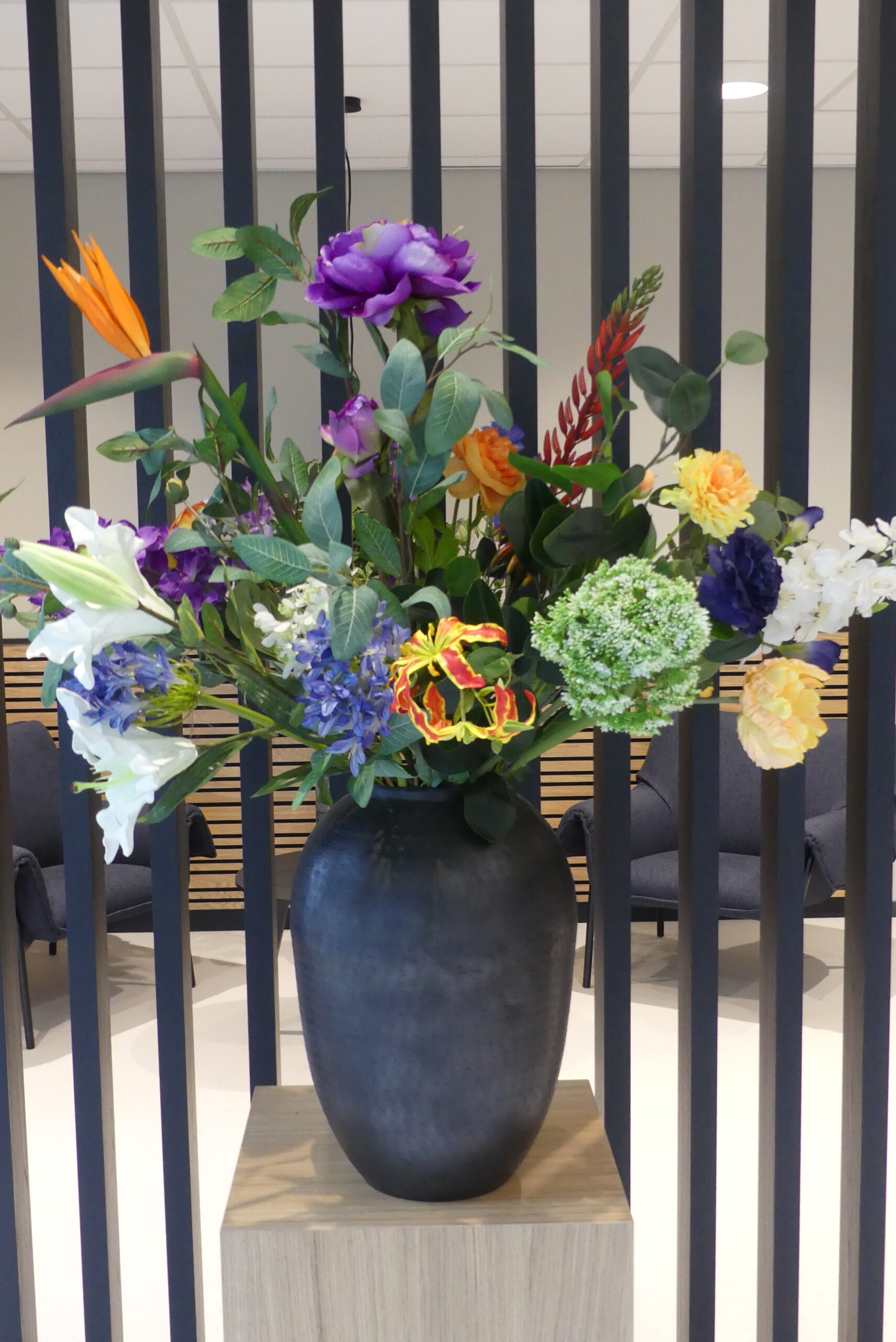 Ontwerp en realisatie van een kunstboeket als stijlvolle blikvanger bij de entree.